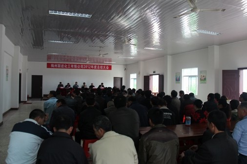 2013年2月2日,梅州聯(lián)進(jìn)化工有限公司在公司進(jìn)行2012年度總結(jié)大會(huì),會(huì)后公司全體員工及家屬乘坐旅游大巴前往梅州市4星級(jí)旅游景區(qū):雁鳴湖旅游度假村參加2013年新春團(tuán)拜活動(dòng)。