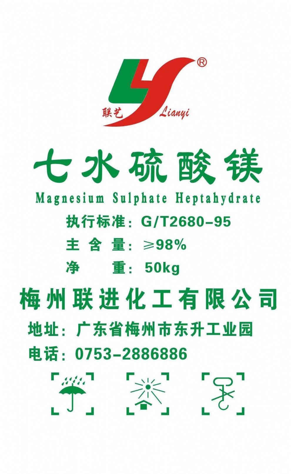 "Lian Yi" branded Sodium Metabisulfite is produced strictly in conformity with the national standard.